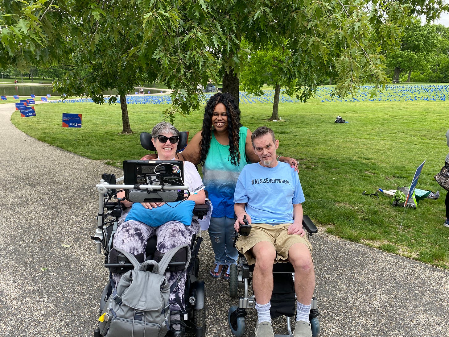 For two years I advocated with I AM ALS serving on five of their seven teams. All of the meetings were held over zoom so I hadn’t met anyone in person yet. The Flag event would’ve been a perfect opportunity, but I couldn’t afford it.